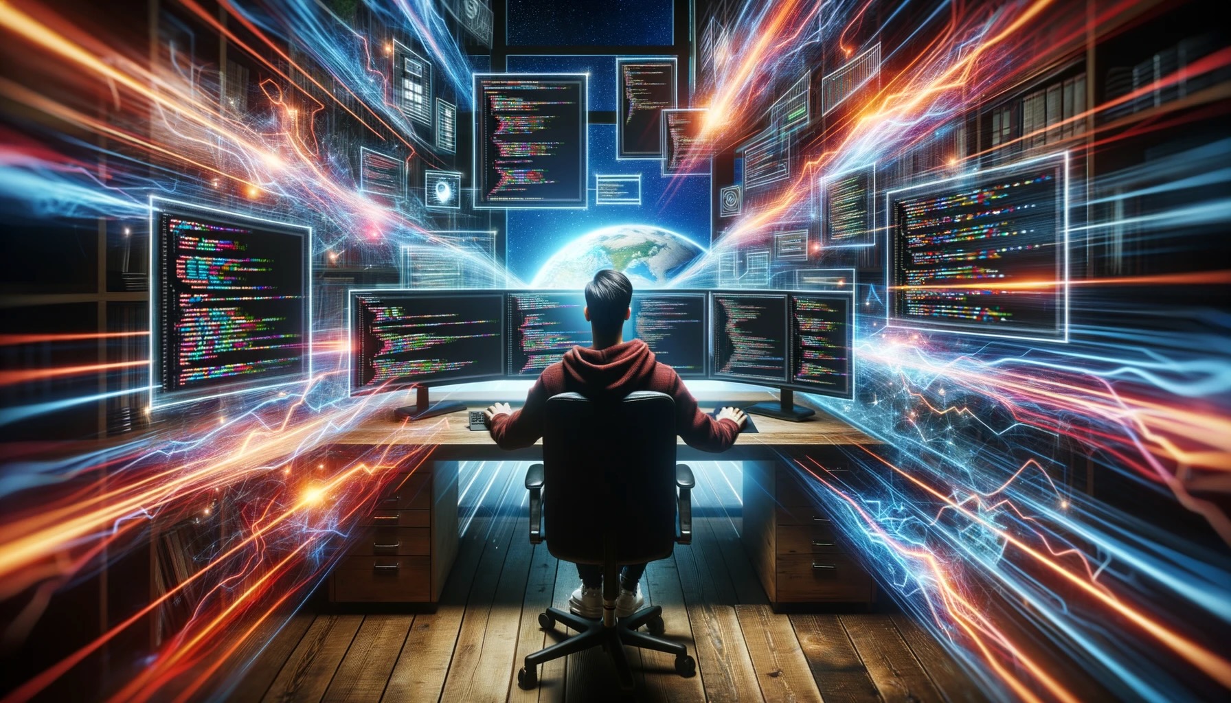 "Supercharged developer" image created by ChatGPT4 + Dall E".